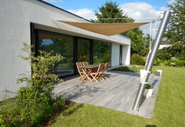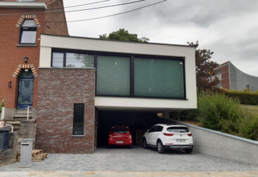 Construction d’une habitation passive sur un terrain en pente et de forme trapézoïdale.